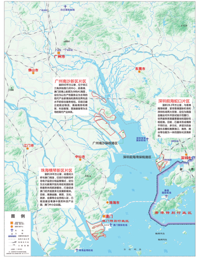• ?????2014年12月,國務院決定設立中國(廣東)自由貿易試驗區,廣東自貿區涵蓋三片區:廣州南沙新區片區(廣州南沙自貿區)、深圳前海蛇口片區(深圳前海蛇口自貿區)、珠海橫琴新區片區(珠海橫琴自貿區),總面積116.2平方公里。